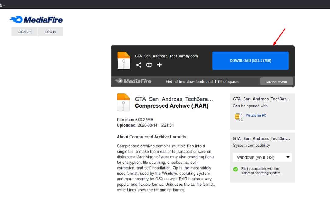 - بمجرد الانتهاء من تحميل لعبة GTA San Andreas للكمبيوتر كاملة الاصلية كل ما علينا القيام به هو فك ضغط اللعبة ونستطيع استخدام برنامج WinRAR الرائع في تلك العملية .