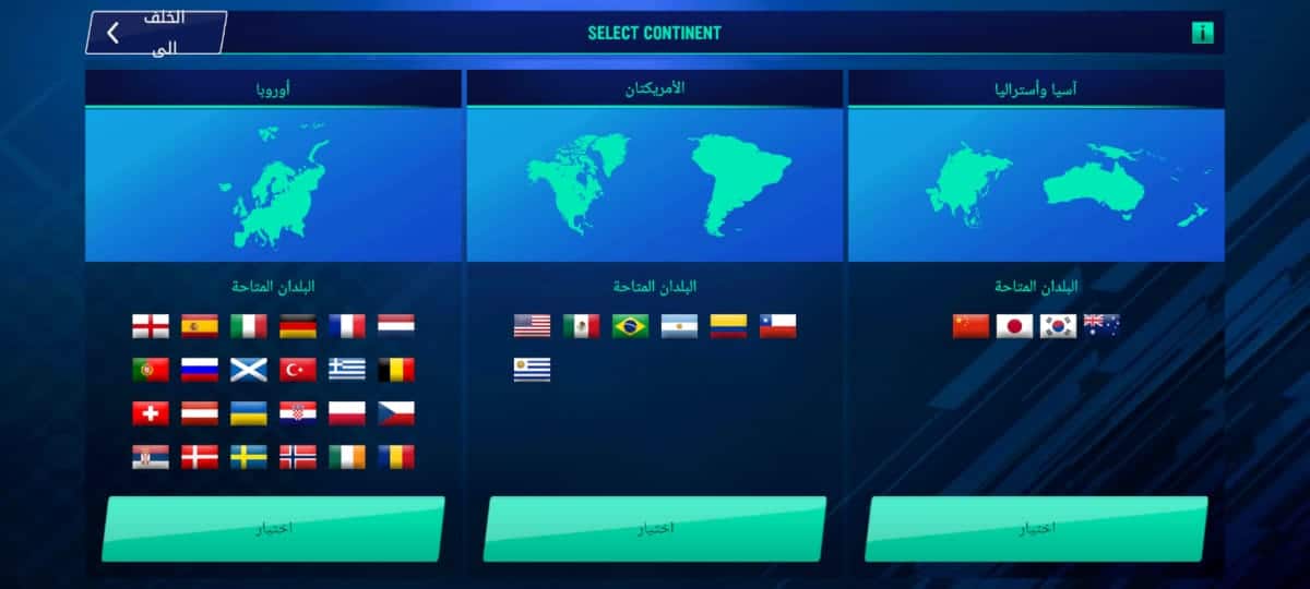 - ثم قم باختيار القارة التي تريد أن تبدأ فيها عملية التدريب كما موضح بالصورة التالية .