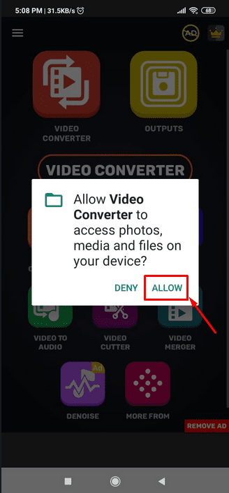 - نقوم بالسماح للبرنامج بالوصول إلي الملفات الخاصة بنا من خلال الضغط على زر Allow .