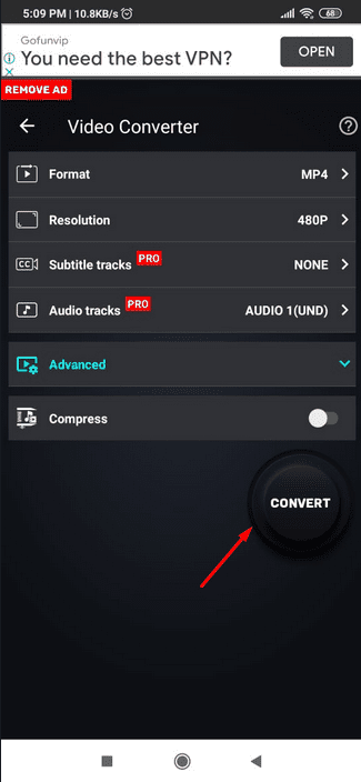 - حتي نبدأ في عملية تحويل الملف في الحال نقوم بالضغط على CONVERT ليبدأ البرنامج في عملية تحويل صيغة الفيديو .