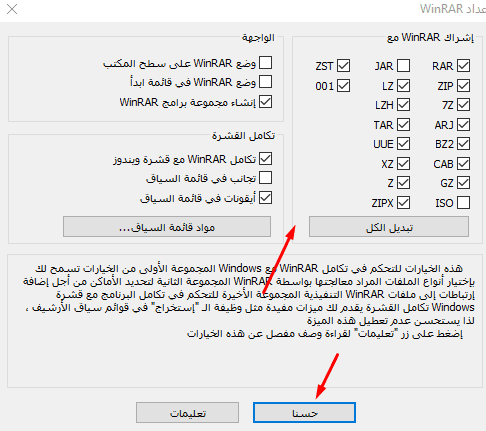 - بعد ذلك نقوم باختيار جميع صيغ الملفات التي نريده من خلال الصيغ المتوفرة أمامنا كما هو في الصورة التالية ثم نقوم بالضغط علي خيار حسنا حتي تم حفظ تلك الخطوات .