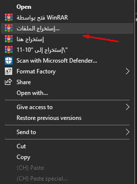 - ومن خلال الفارة نقوم بالضغط على الزر الأيمن ونقوم بالضغط علي خيار Extract أو استخراج الملف كما هو في الصورة التالية .