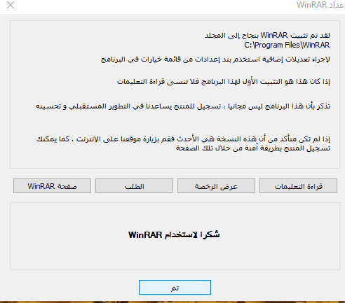- وبعد ذلك نقوم بالضغط على خيار تم كما هو في الصورة التالية وبذلك نكون نجحنا في عملية تحميل برنامج WinRAR 64 bit وأصبحنا نستطيع استخدام البرنامج بكل سهولة وضغط او فك ضغط العديد من الملفات التي نريدها .