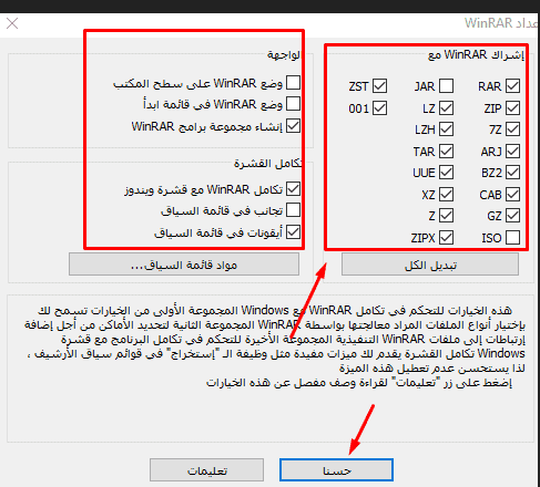 • ثم نقوم باختيار صيغ البرنامج المناسبة لنا من خلال الصيغ المتوفرة أمامنا ثم نقوم بالضغط علي خيار حسناً حتي تتم حفظ تلك الاختيارات .