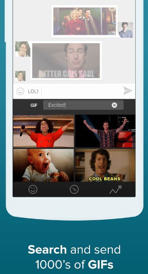 ستتمكن أيضاً من إرسال العديد من فيديوهات وصور GIF التي يعشقها الجميع وذلك من إخلال إضافة رائعة داخل لوحة المفاتيح الأسرع في العالم .