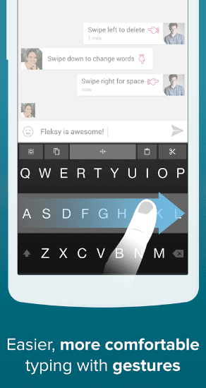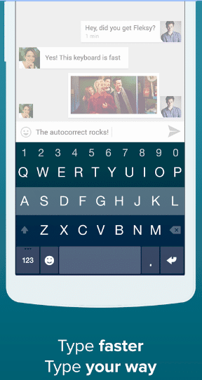 مع لوحة مفاتيح Fleksy ستتمكن من الكتابة بسرعة كبيرة دون أي أخطاء وعلى طريقتك الخاصة بكل سهولة .
