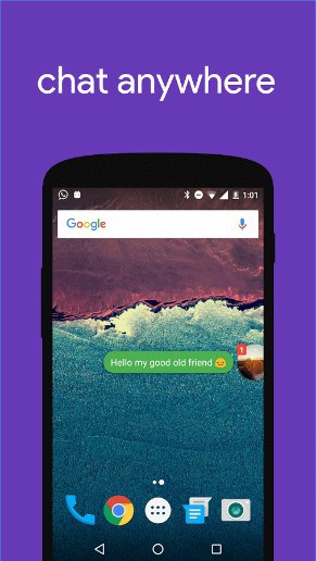 يعتبر برنامج Flychat من التطبيقات الرائعة المجانية التي تساعدك في إضافة ميزة الرسائل العائمة إلي تطبيق الواتس اب كما هو موضح بالصورة :