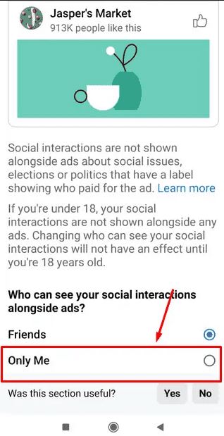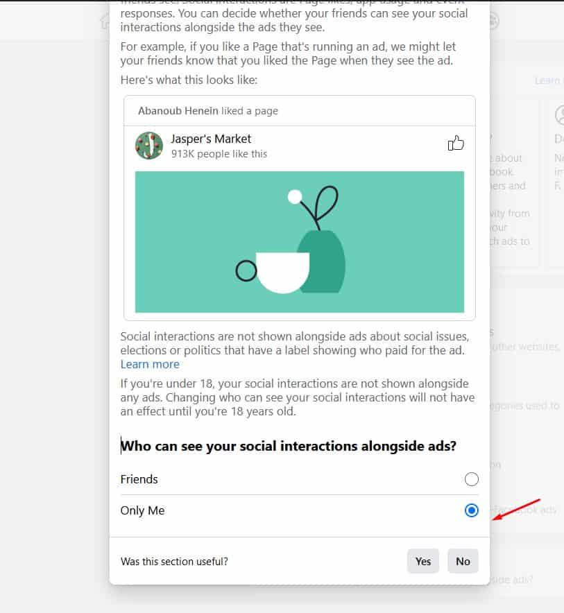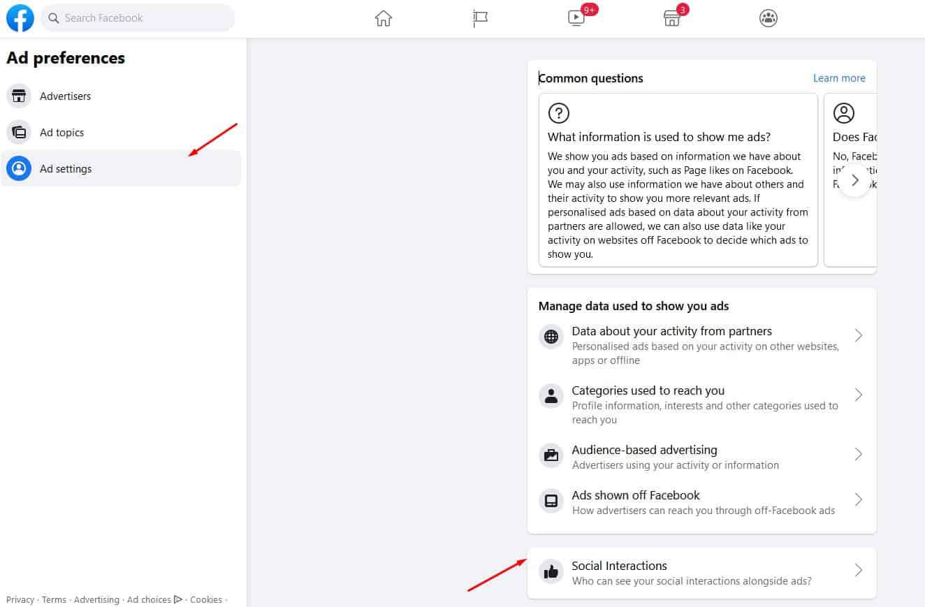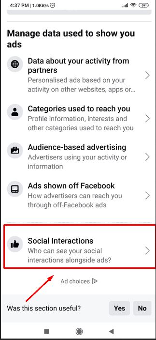 - بمجرد الانتهاء من تلك الخطوات نقوم بالضغط على خيار Ads Setting ثم بعد ذلك نضغط على زر Social Interactions الموجود أمامنا في الصورة التالية .