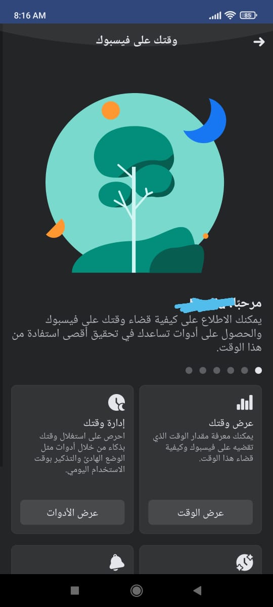 - سنقوم بالضغط على خيار إدارة وقتك وهو الخيار الثاني وتستطيع بعدها أن تقوم بتحديد المدة التي تريد أن تقضيها على فيسبوك .