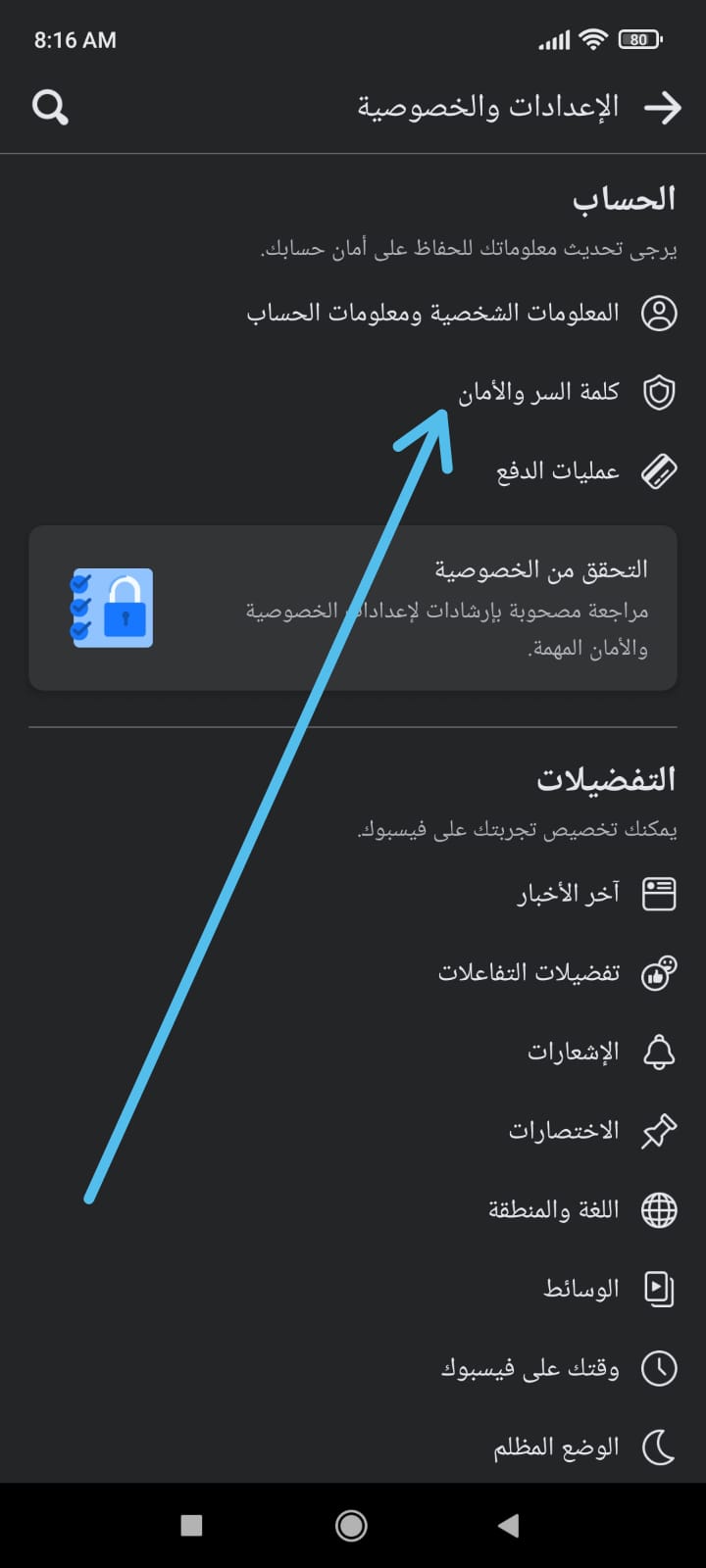 - وسيظه عدة حيارات قم بالصغط على خيار الاعدادات والخصوصية settings &privacy .