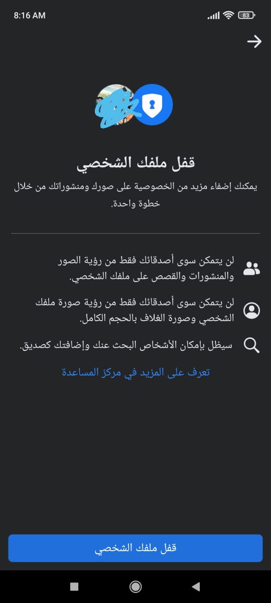 2-لن يتمكن سوي أصدقائك فقط من رؤية صورة ملفك الشخصي وصورة الغلاف بالحجم الكامل .