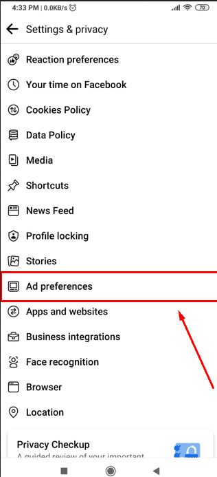 - بعد الذهاب إلي إعدادات التطبيق نقوم بالنزول إلي اسفل حتي نستطيع إيجاد خيار Ad Preferences أو تفضيلات الإعلانات ونقوم بالضغط عليه .