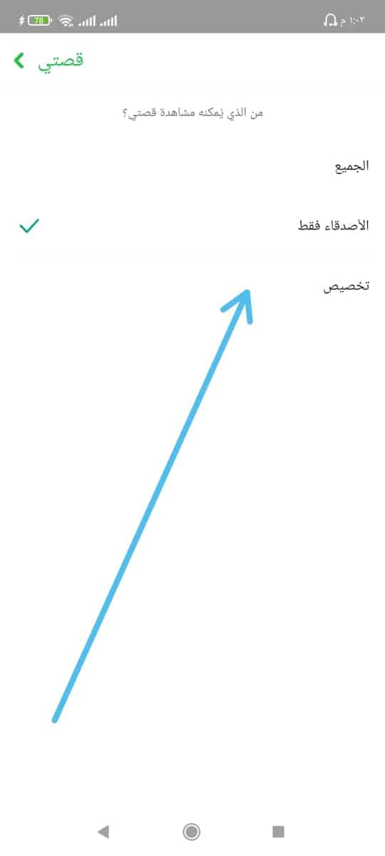 • إذا قمت بالضغط على تخصيص تستطيع بعدها أن تقوم بتخصيص الاستوري الخاصة بك منها بكل سهولة وبساطة، وبذلك نكون قد تعرفنا على كيفية تخصيص السناب في التحديث الجديد خطوة بخطوة ومن خلال عرض الصور التوضيحية .