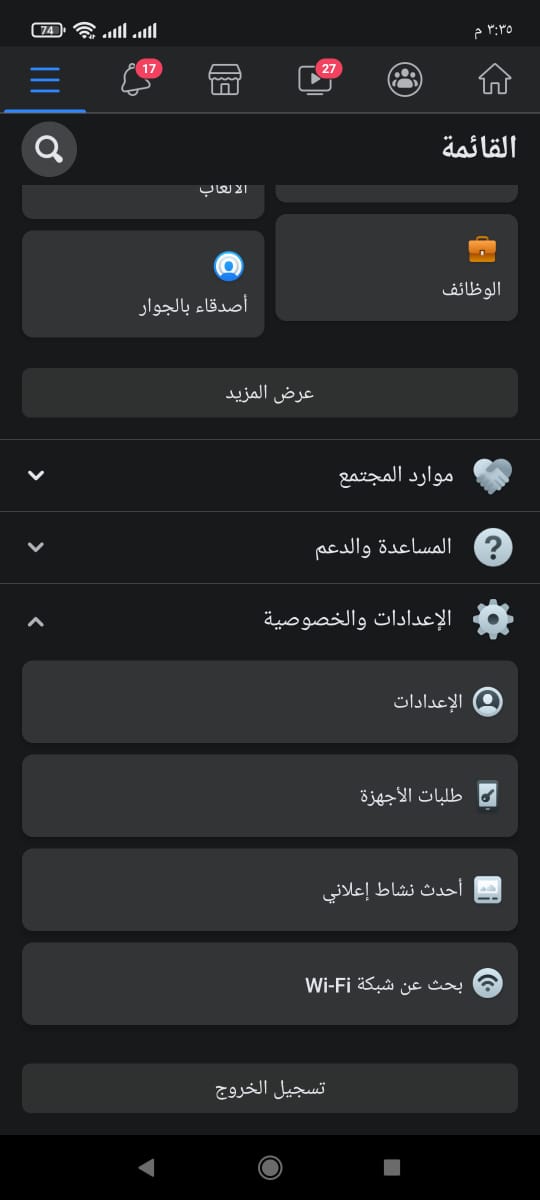 سنقوم في هذه الفقرة بالتعرف على كيفية تعطيل حساب الفيس بوك مؤقتاً من هاتفك الاندرويد .