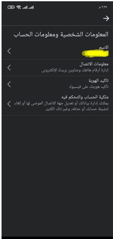 • ثم ستظهر أمامك مجموعة كبيرة من الخيارات كما بالصورة التالية قم بالضغط على خيار المعلومات الشخصية ومعلومات الحساب Personal and account information .