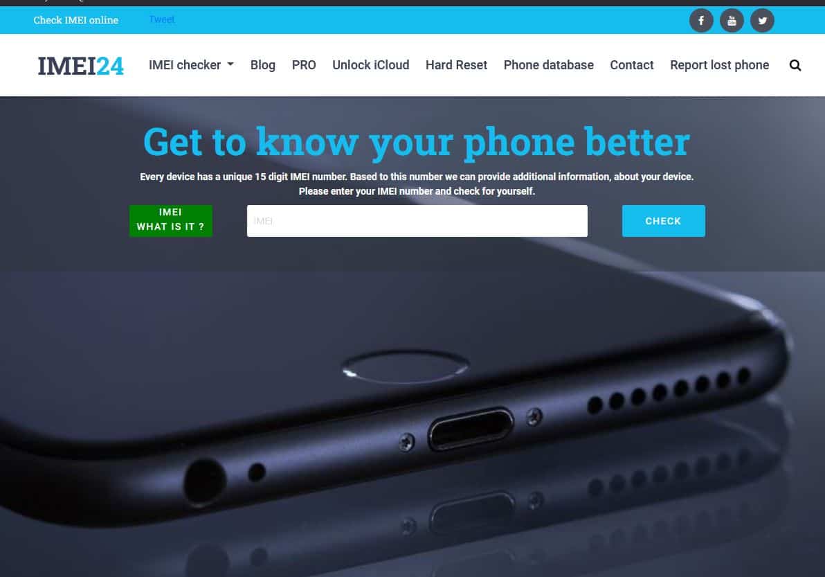 الموقع الثاني في مقال اليوم هو موقع IMEI24 من أشهر المواقع التي نستطيع من خلالها التحقق من الايفون الاصلي وبطريقة بسيطة للغاية وذلك بسبب واجهة الموقع الرائعة التي تتميز بالسلاسة والبساطة فهناك ملايين المستخدمين من حول العالم تعتمد على الموقع بشكل كبير في الكشف عن الهاتف لمعرفة بعض المعلومات الخاصة به .