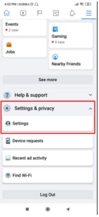 - ثم قم بالضغط على زر Settings & Privacy ثم نقوم بالضغط على زر Settings كما موضح بالصورة التالية .