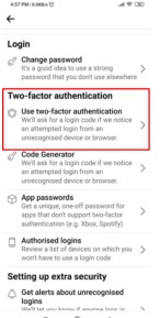- وبعد ذلك قم بالبحث عن خيار Use two factor authentication وهو الخيار المسؤل عن تأمين الحساب الخاص بنا .
