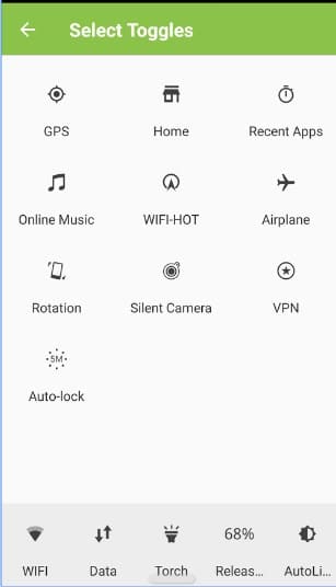 ويمكنك من خلال الضغط المطول على أي اختيار من الإعدادات من الوصول إلي تلك القائمة في الصورة التالية والتي يمكنك من خلالها ان تقوم بتخصيص الإعدادات الموجودة في قائمة iPanel .