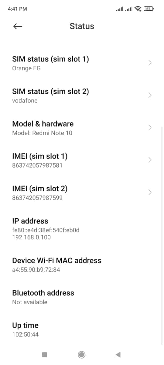 • ومباشرة ستجد أمامك الرقم التسلسلي الخاص بهاتفك الاندرويد .