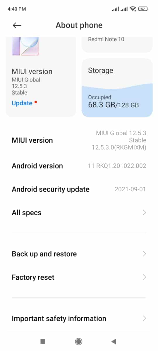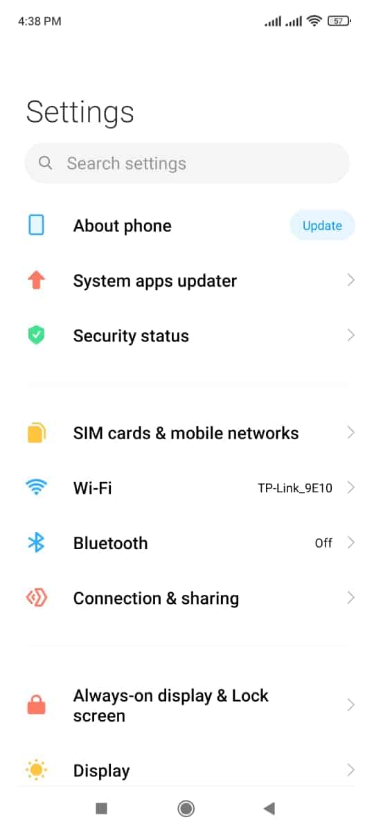 • تحتاج منك القيام بمجموعة من الخطوات البسيطة وهي أن تقوم في البداية بالدخول إلي الإعدادات settings الخاصة بهاتفك ثم قم بالضغط about phone كما بالصورة التالية .