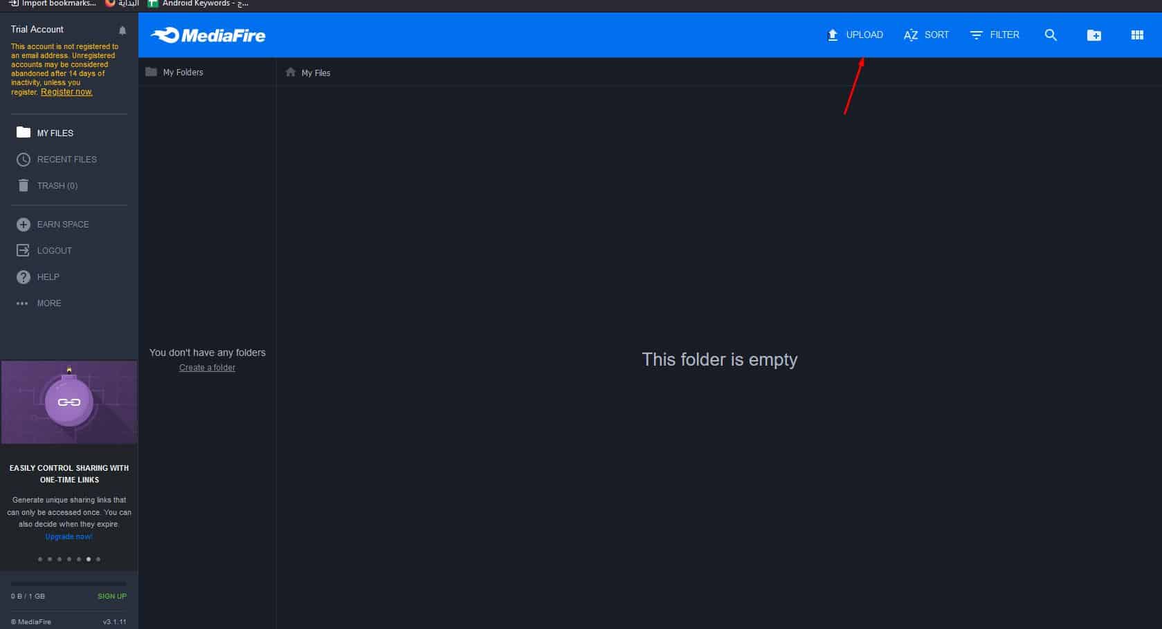 موقع MediaFire هو افضل موقع لرفع الملفات الكبيرة برابط مباشر بل من أقدم وأشهر المواقع التي يعتمد عليها ملايين المستخدمين في عملية رفع الملفات الخاصة بهم فيوفر الموقع مساحة تصل إلى 10GB مجانًا ومن الممكن أن تصل إلى 50GB ولكن هذا في حالة الإشتركات المدفوعة فقط ويوفر أيضاً إمكانية رفع ملف بمساحة 4GB بنقرة واحدة ويتميز الموقع بواجهة بسيطة تمكننا من التعامل معه بكل سهولة ولا يحتاج الموقع إلي وجود أي خبرة سابقه حتى نتمكن من التعامل معه ونستطيع رفع العديد من الملفات بكل سهولة .