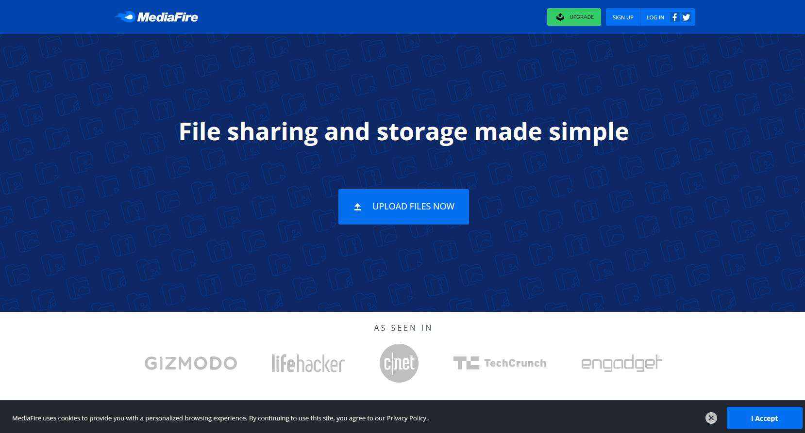 موقع MediaFire هو يعتبر من المواقع العالمية التي تستخدم في خدمات رفع الملفات الكبيرة ومشاركتها برابط مباشر بكل سهولة من إي شخص حول العالم يوفر لنا الموقع مساحة 50 ميجا بايت ويوفر لنا العديد من الأدوات المشاركة البسيطة التي تسهل علينا عملية مشاركة الملفات فقد تم تصميم موقع MediaFire حتي يوفر لنا الملفات الخاصة بنا متاحة في كل مكان في العالم ونستطيع الوصول إليها بكل سهولة فالموقع لا يقوم بتخزين الملفات فحسب بل يقوم مشغل بحيث أننا نستطيع تنسيق أكثر من 200 تنسيق مختلف للملفات في متصفحك لذلك هو من افضل مواقع رفع الملفات الكبيرة ونستطيع استخدام الموقع من خلال الرابط الموجود اسفل الفقرة .
