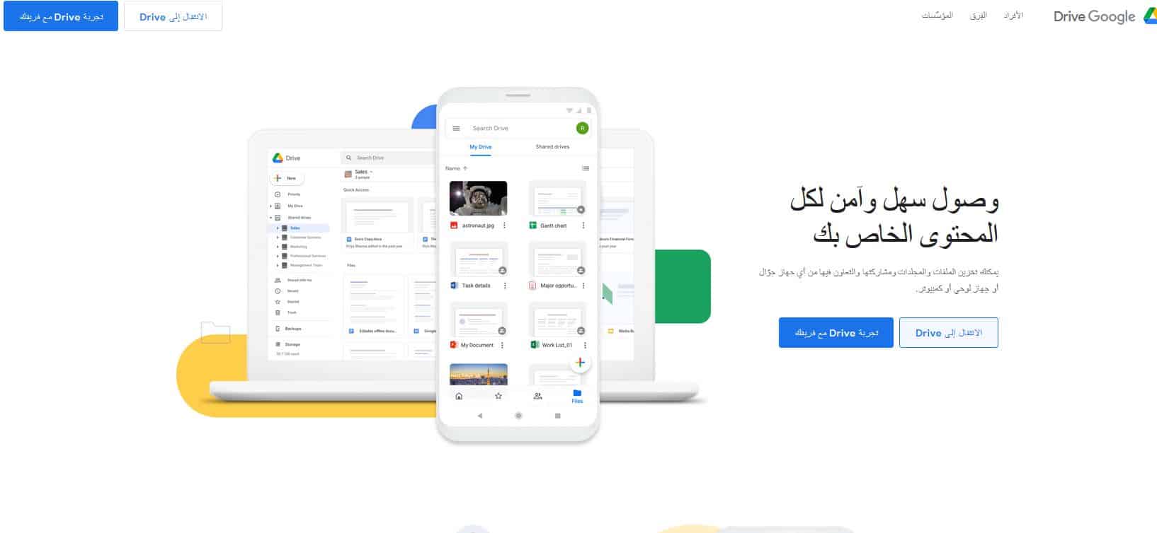 يقدم لنا Google Drive واحدة من افضل الخدمات السحابية التي نستطيع من خلاله رفع العديد من الملفات بكل سهولة فيوفر لنا مساحة تخزين تصل إلي 15 ميجابايت ويسمح لنا بمشاركة العديد من الملفات الكبيرة مثل الصور والفيديوهات بجانب وجود خاصية المزامنة والنسخ الاحتياطي التي يتميز بها هذا الموقع الذي يعتبر اشهر مواقع رفع الملفات الكبيرة و إذا كنت تمتلك حساب خاص بك على جيميل تستطيع استخدام هذا الموقع بكل سهولة فقط من خلال الضغط على خيار Google Drive الموجود داخل البريد الإلكتروني الخاص بك و إذا كنت لا تمتلك تستطيع استخدامه من خلال الضغط على الرابط الموجود اسفل الفقرة .