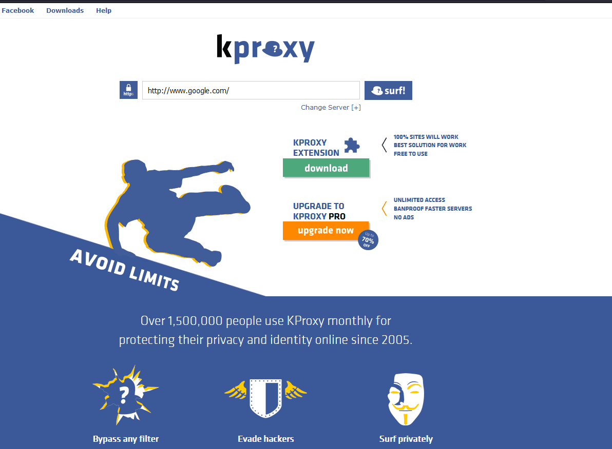 موقع KProxy واحد من المواقع الرائعة التي تقدم لنا خدمات فتح المواقع المحجوبة بشكل مجاني تماماً كما تقدم لنا درجة عالية من الأمان عند استخدام تلك المواقع فالبرنامج لا يقوم بتسجيل أي تحركات لنا على الإنترنت وذلك حتي يحافظ على خصوصيتنا ويعتبر واحد من أهم المواقع التي يعتمد عليها ملايين من المستخدمين حول العالم فهو من أشهر مواقع فتح المواقع المحجوبة بدون برامج للاندرويد ويمكننا استخدام الموقع من خلال الضغط هنا والانتقال إلي واجهه البرنامج الرئيسية والبدء في فتح جميع المواقع المحجوبة التي نريدها بكل سهولة .