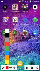 - بعد السماح له بالعمل على هاتفك يجب أن تقوم بإخذ screenshot كما تعمل بالضغط على الزر الرئيسي Home + زر فاتح وقفل الهاتف Power أو حسب طريقة هاتفك وبعدها سيظهر لك أيقونات للتحكم على الجانب الأيمن من الشاشة كما موضح بالصورة الأتية :
