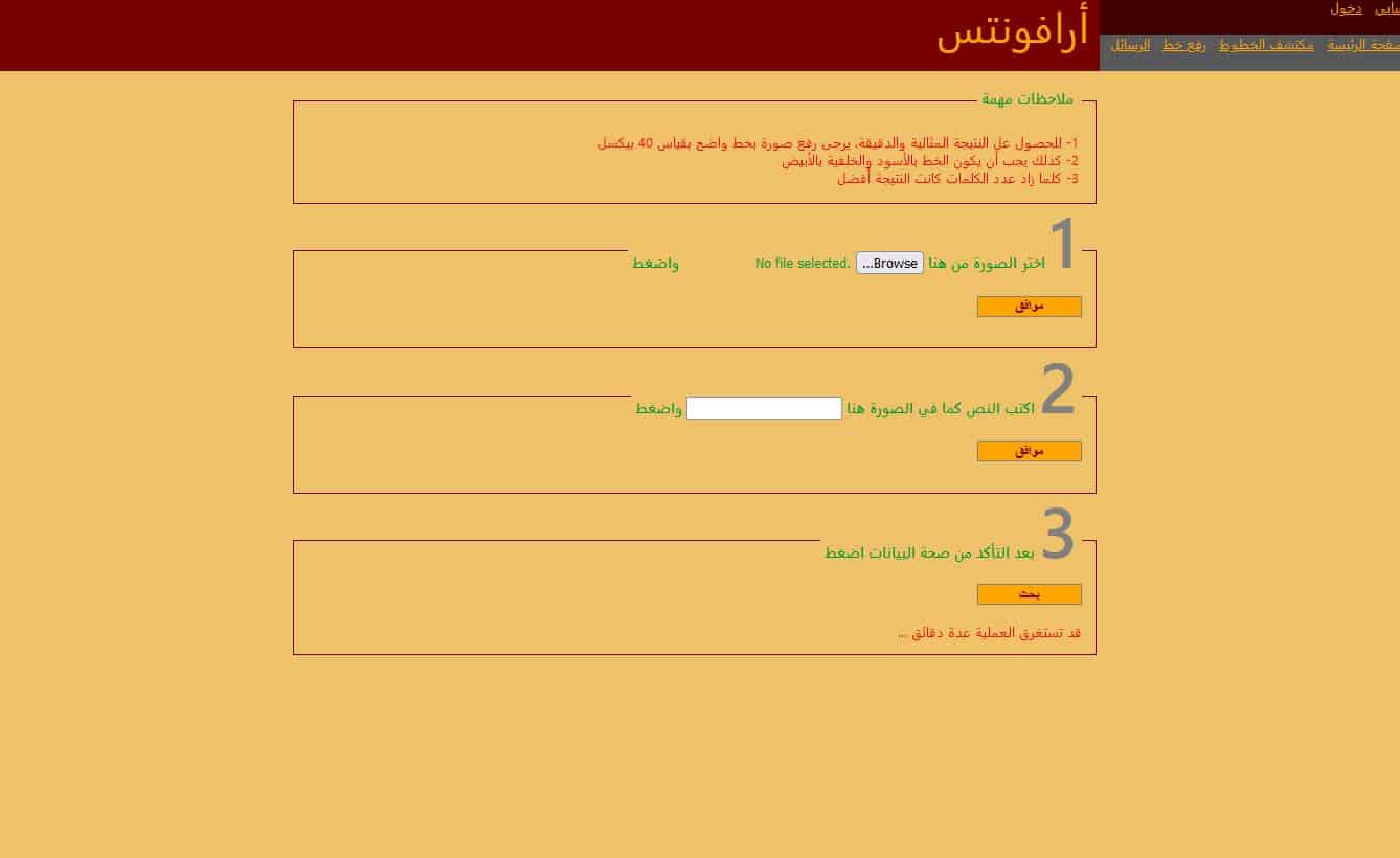 • وبهذا ستكون قد تمكنت من البحث عن خط عربي بالصورة من قبل هذا الموقع الرائع .