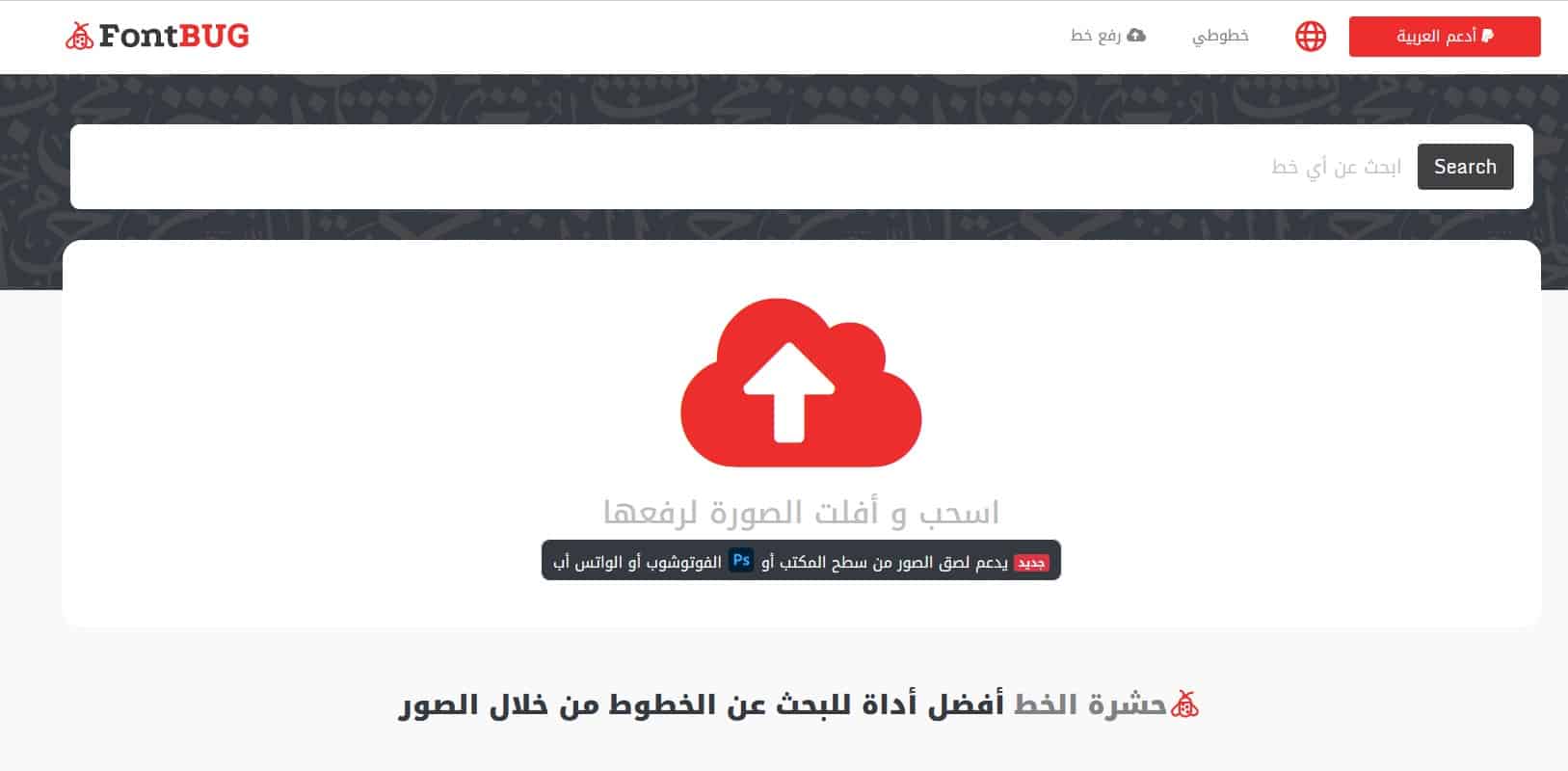 موقع FontBug هو واحد من المواقع الرائعة التي نستطيع من خلاله البحث عن خط عربي بالصورة وعلى الرغم من ذلك لا يعرف الموقع العديد من المستخدمين على الرغم من مميزات الموقع الرائعة التي يقدمها للمستخدمين فالموقع يحمل واجهة بسيطة تمكنا من البحث عن خط عربي بالصورة بكل سهولة وبجون الحاجة للقيام بالعديد من الخطوات المعقدة أو مواجهة إي مشكلة ومن رأي هذا الموقع هو الأفضل على الإطلاق وعلى الرغم من وجود الكثير من المواقع القوية التي يمكنك استعمالها إلا وأن هذا الموقع يمتلك  مجموعة كبيرة من المميزات الرائعة والتي سنتعرف عليها سوياً من خلال الفقرة القادمة فقط تابعوا معي .