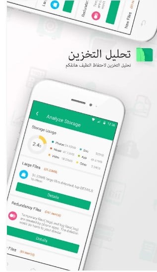 - كما أخبرتكم بالأعلى أيضاً أن من مهام ومميزات التطبيق هو عمل إحصائيات وتحليل كامل لذاكرة الهاتف وإزالة الملفات الغير مرغوب فيها .