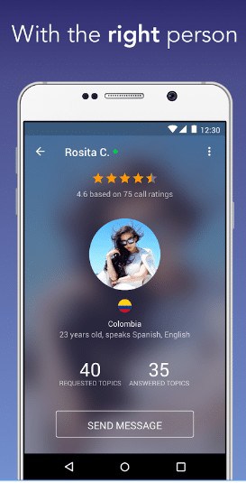 يمكنك من خلال تطبيق Wakie أن تقوم باختيار الشخص الذي تتحدث إليه وستجد تقييم لكل شخص يمكنه أن يقدم المساعدة لك .