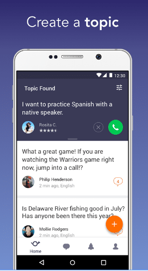 من خلال هذا التطبيق الرائع تستطيع أن تقوم بعمل مواضيع وتنتظر الردود أو من يساعدك فمثلاً تريد تعلم بعض اللغات فستقوم بإنشاء موضوع حول تعلم اللغات وسينضم إليك في الحديث كل من يريد مساعدتك في تعلم تلك اللغة :